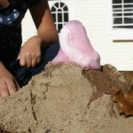 - Outside, build a mound of dirt around your water bottle so that the bottle is centered and the mouth of the bottle remains uncovered at the peak of the mountain of dirt.