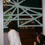 2. Criss Cross the tape in different angles to create what looks like a giant spider web.